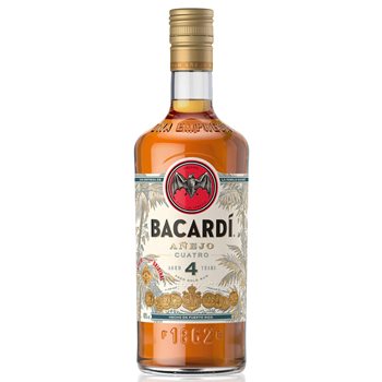 A golden rum with mild notes of vanilla and honey and hints of toasted oak. Bacardi Rum Añejo 4 has aged 4 years under the Caribbean sun to achieve the characteristic taste and aroma. Can be enjoyed on the rocks or in drinks.