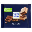 Según Ritter Sport, Ritter Sport Nougat es lo mejor que le ha pasado a las avellanas. En el corazón del plato de chocolate negro hay un lujoso relleno de nougat hecho con las mejores avellanas, que son asadas doradas y finamente molidos. La barra de chocolate tiene un sabor a nuez maravillosamente intenso. Contiene 100 g.