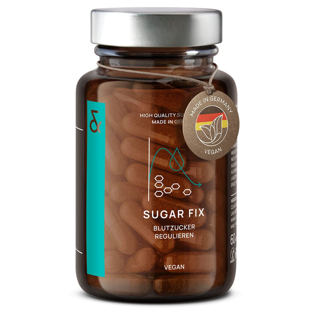 CLAV® N°9 SUGAR FIX - Capsule di cannella con estratto di cannella da 400 mg, 40μg di cromo e 10 mg di zinco per dose giornaliera più beta glucano, albero di jambul e melone amaro - equilibrio dello zucchero nel sangue - 60 capsule - vegan
