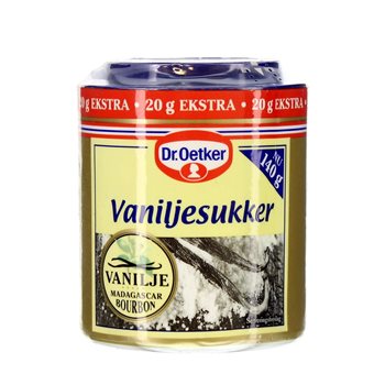 Vanilla Sugar del Dr. Oetker estratto dalla vera vaniglia bourbon del Madagascar. Aggiunge la profumo dolce e morbido e il sapore ai tuoi dessert e prodotti da forno. Usando due cucchiai. Vanilla Sugar, ottieni lo stesso risultato dalla tua ricetta di un baccello alla vaniglia.