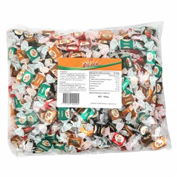 Her får du en jumbo -pose med 1,5 kg blandede Big Ben Toffees. Posen inneholder forskjellige varianter med smaker av rom, hasselnøtt, kakao, lakris og vanlig. TOFFEE - Totalt ca. 400 stk. Big Ben Caramels er en godteriklassiker som aldri går ut av stilen og appellerer til folk flest. Denne store vesken er perfekt for skolekraduasjoner, juleutdannelser, etc.