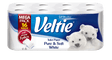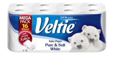Veltie toalettpapir 16 RL. er et holdbart, men mykt toalettpapir av beste kvalitet. Veltie toalettpapir består av tre lag for optimal komfort og er øko-merket med økolabel.