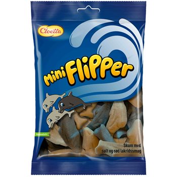 Mini licor de flipper de la Cloetta este bomboane de spumă în formă de delfini mici. Delfinii din spumă sunt disponibili în două arome în pungă, și anume aroma dulce și sărată. Delfinii de licor sunt lipsiți de ulei de palmier. Un amestec perfect de dulce și sărat pentru toți iubitorii de licor.